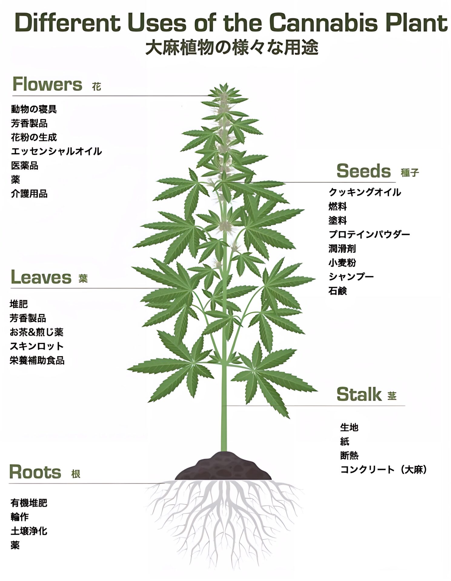大麻(ヘンプ)は種だけでなく、根や花を含むその全てが資源となり得る“究極の植物”です。