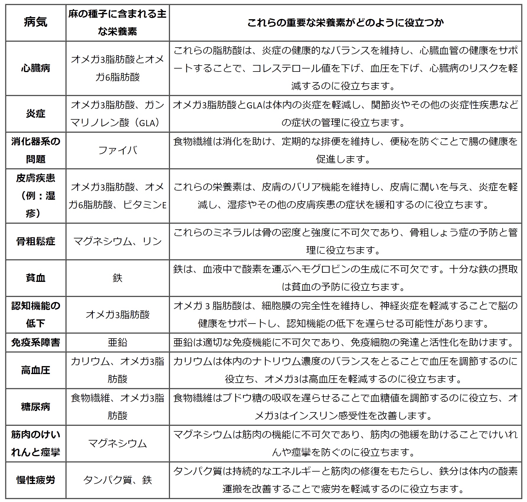 ヘンプシードの非常に優れた効果効能が書かれています。